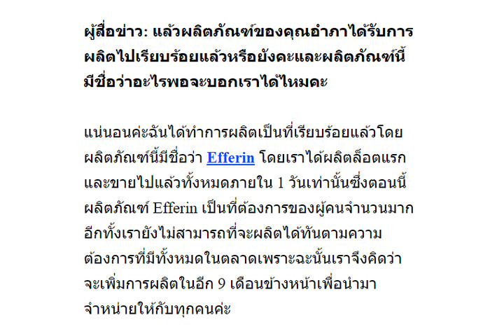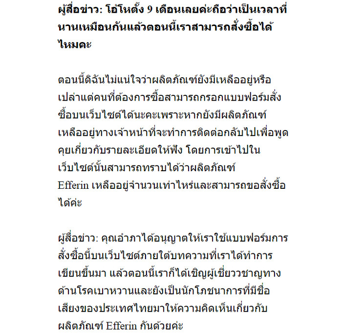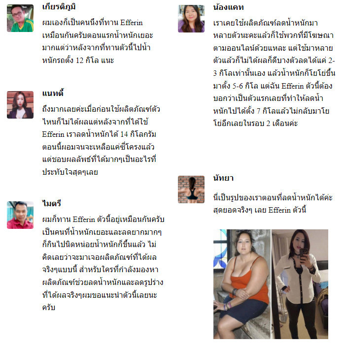 คุณต้องการลดน้ำหนักหรือไม่? แล้วคุณจะสนใจที่จะรู้ว่า คืออะไร ราคาเท่าไร Efferin ทำงานอย่างไร วิธีทาน ดีไหม คืออะไร วิธีใช้ยา Efferin ซื้อที่ไหน และราคาเท่าไหร่ในประเทศไทย นอกจากนี้ใน ฟอรัม คุณสามารถอ่าน รีวิว ความคิดเห็น และ ความคิดเห็น เกี่ยวกับ Efferin