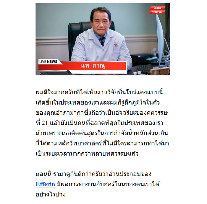ยาลดน้ำหนัก Efferin – ยาแผนปัจจุบันที่ช่วยลดน้ำหนักอย่างรวดเร็วและมีประสิทธิภาพ เครื่องมือที่นำเสนอนี้จะทำลายเซลล์ไขมันและทำความสะอาดร่างกายของสารพิษและสารพิษ
